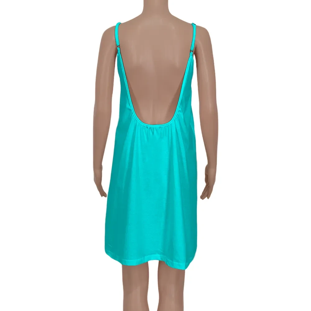 It features thin adjustable straps and a daring open back that plunges to the lower back for a sensual, refined look.